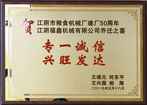 江陰福鑫機(jī)械有限公司前身為全民所有制企業(yè)——江陰市糧食機(jī)械廠。該廠始建于1969年,至今已有 50年歷史。
